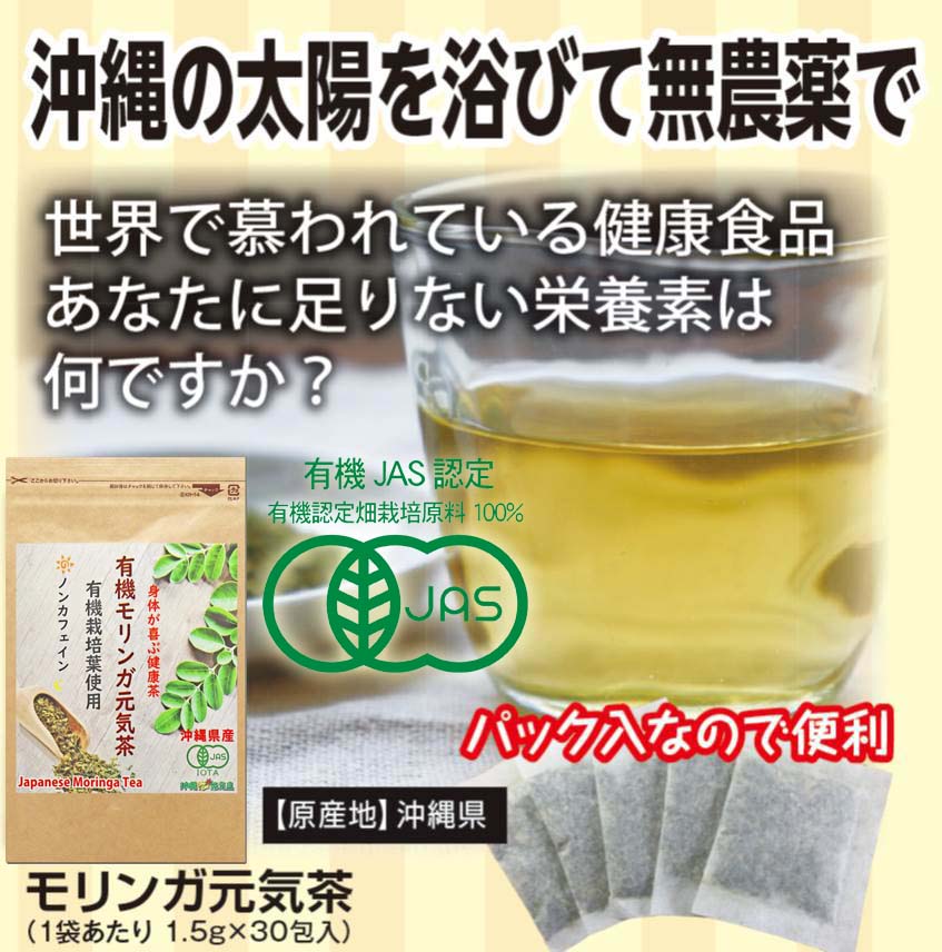 有機JAS モリンガ元気茶30包 ノンカフェイン 沖縄県産 有機モリンガ